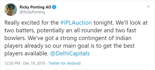 Kolkata (West Bengal) [India], Dec 19 : Delhi Capitals head coach Ricky Ponting shared his strategy ahead of today's Indian Premier League (IPL) players auction for...