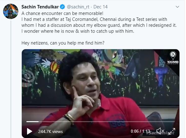 New Delhi [India], Dec 15 : A day after former batsman Sachin Tendulkar asked netizens to find a staff of Taj Hotels whose advice helped him during his cricketing...