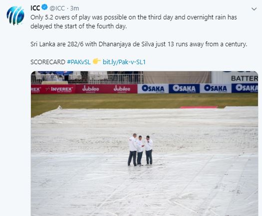 Rawalpindi [Pakistan], Dec 13 : For the third consecutive day in the first Test between Pakistan and Sri Lanka rain and bad light played a spoilsport and the match...