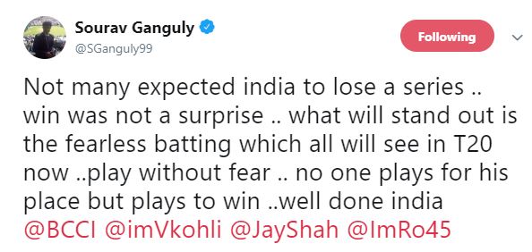 New Delhi [India], Dec 12 : The Board of Control for Cricket in India (BCCI) president Sourav Ganguly on Thursday hailed team India's 'fearless batting' in the...