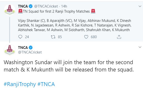 Chennai (Tamil Nadu) [India], Dec 3 : All-rounder Vijay Shankar will be leading Tamil Nadu in the first two matches of the upcoming Ranji Trophy, Tamil Nadu Cricket...