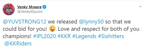 New Delhi [India], Nov 20 : Kolkata Knight Riders' CEO Venky Mysore has replied to Yuvraj Singh's question about the thought process behind releasing Australian...