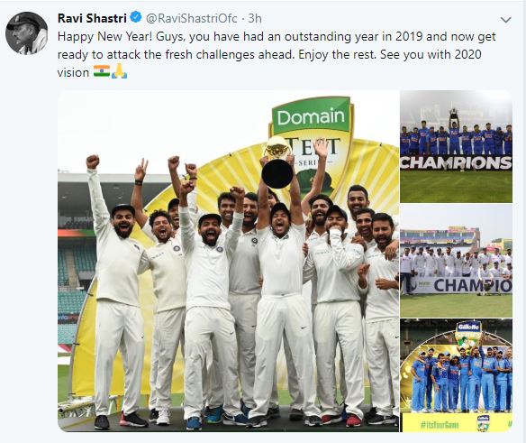 New Delhi [India], Dec 31 : India head coach Ravi Shastri on Tuesday shared a picture of Team India and wished them a Happy New Year.Shastri took to Twitter to...