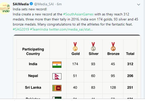 Kathmandu [Nepal], Dec 10 : India has achieved its highest medal tally in the history of the South Asian Games. The contingent was able to win 312 medals, which...