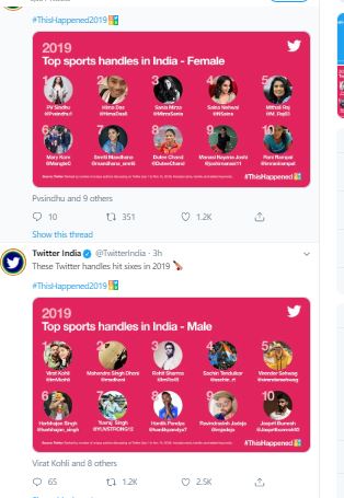 New Delhi [India], Dec 10 : Skipper Virat Kohli's birthday wish for wicket-keeper batsman MS Dhoni became the most retweeted sports-related post of 2019, Twitter...