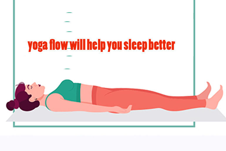 Savasana is the last pose. Lie flat on your back with your arms at your sides. Take a deep breath and close your eyes. This last pose helps the body relax completely and tells the mind that it’s time to sleep.